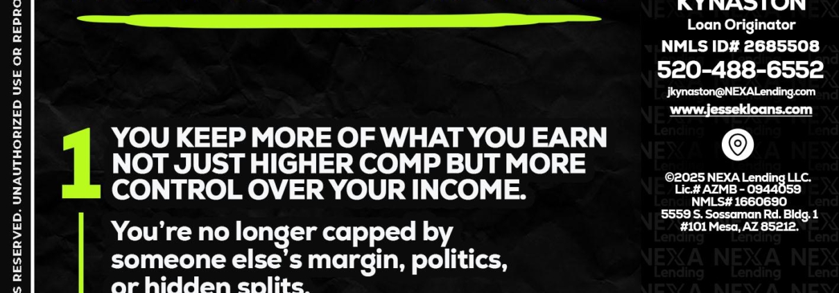 Hi, my name is Jesse Kynaston. I’m a Loan Officer with NEXA Lending LLC., offering personalized mortgage solutions, fast customized quotes, great rates and service with integrity.