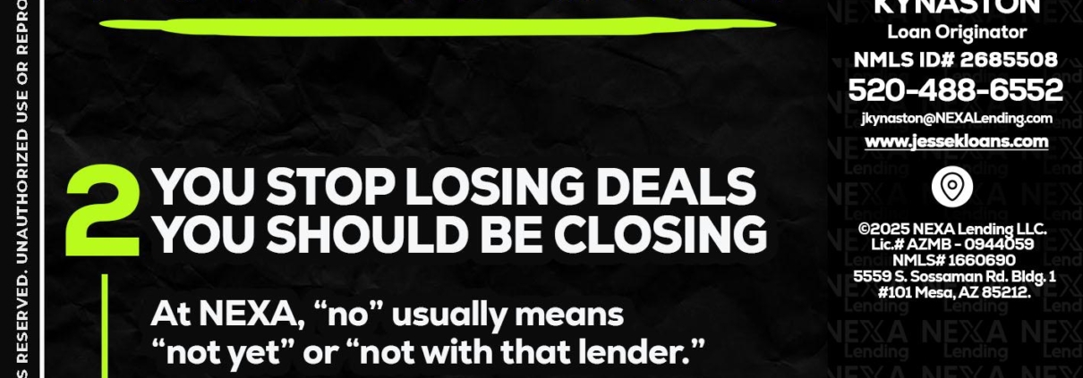 Hi, my name is Jesse Kynaston. I’m a Loan Officer with NEXA Lending LLC., offering personalized mortgage solutions, fast customized quotes, great rates and service with integrity.