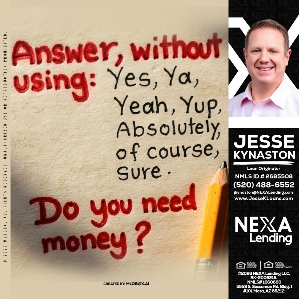 Hi, my name is Jesse Kynaston. I’m a Loan Officer with NEXA Mortgage LLC., offering personalized mortgage solutions, fast customized quotes, great rates and service with integrity.
