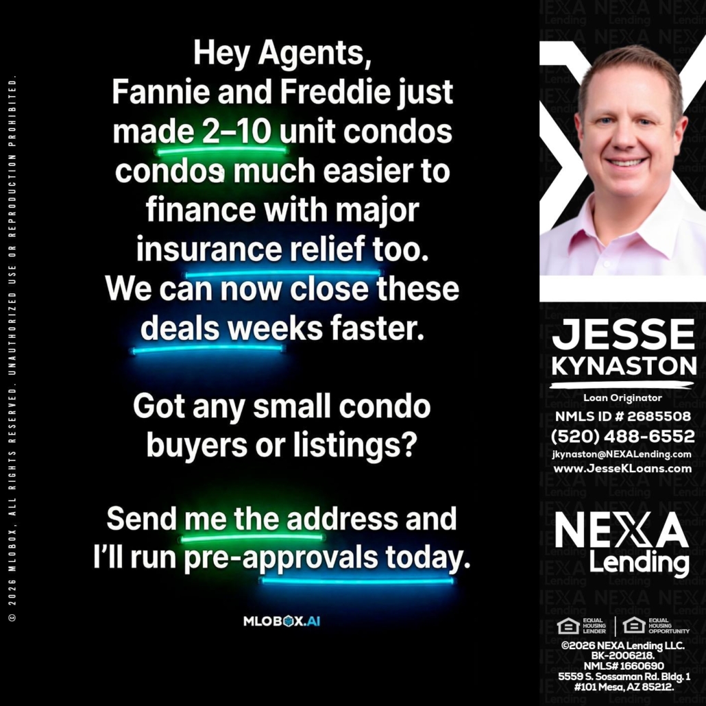 Hi, my name is Jesse Kynaston. I’m a Loan Officer with NEXA Mortgage LLC., offering personalized mortgage solutions, fast customized quotes, great rates and service with integrity.