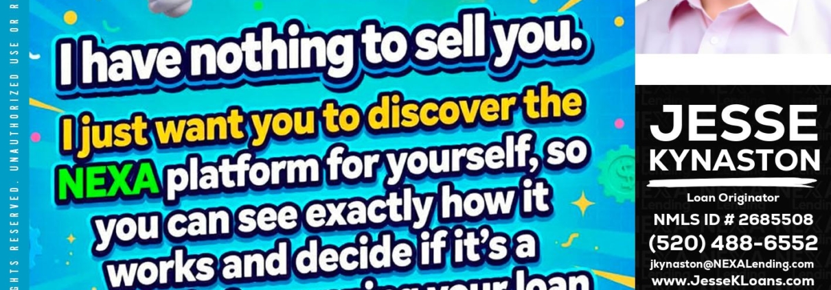 Hi, my name is Jesse Kynaston. I’m a Loan Officer with NEXA Mortgage LLC., offering personalized mortgage solutions, fast customized quotes, great rates and service with integrity.