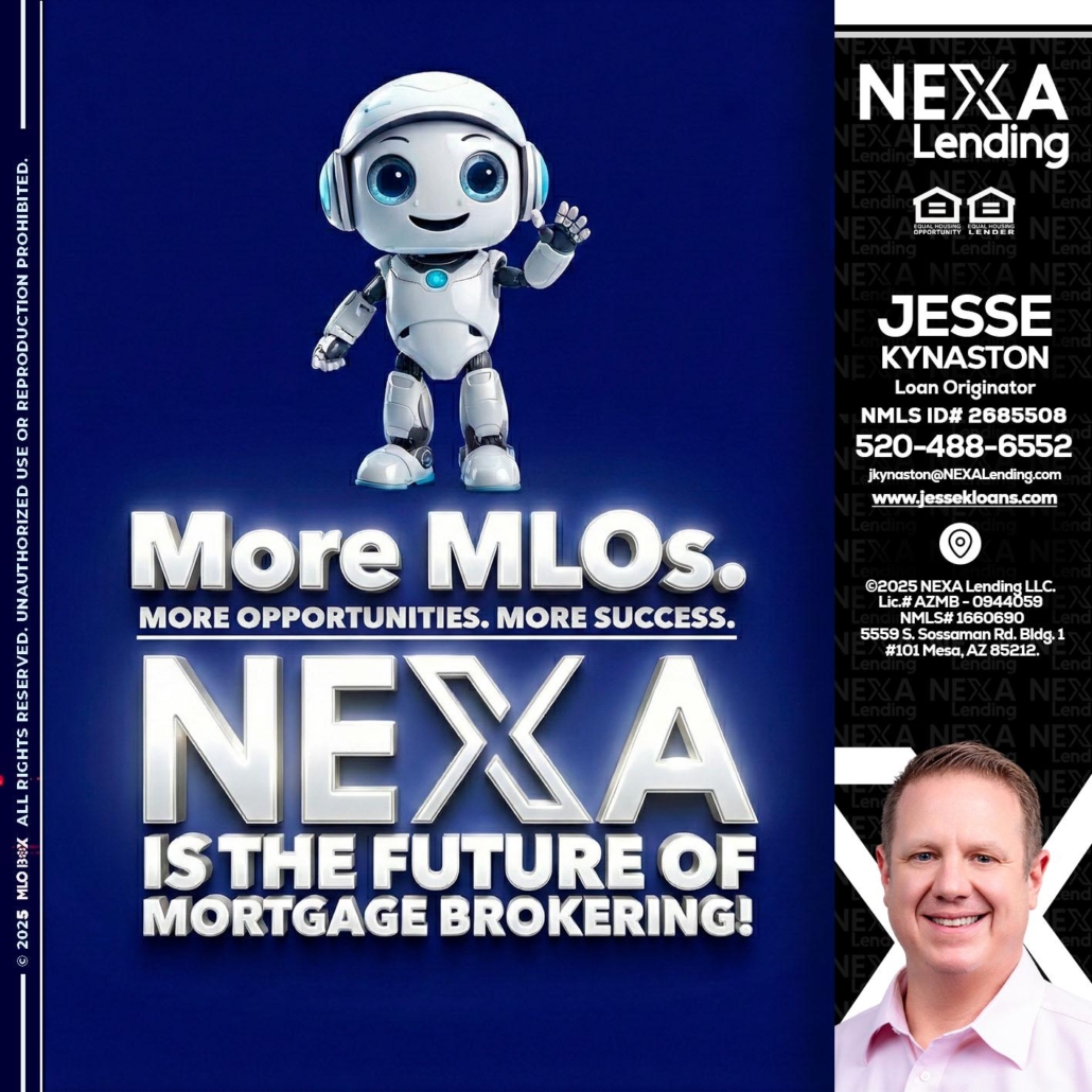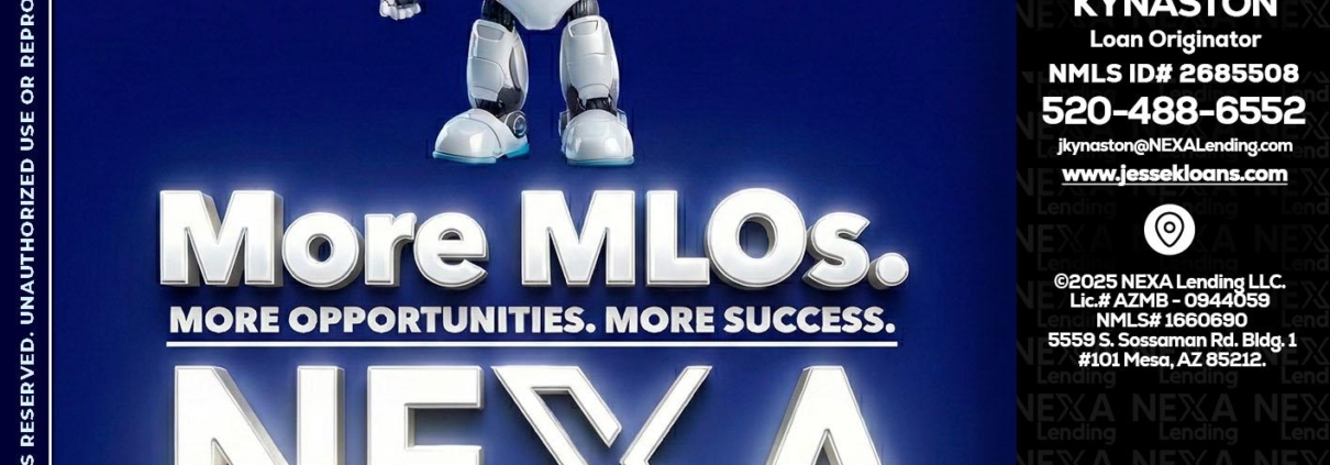 Hi, my name is Jesse Kynaston. I’m a Loan Officer with NEXA Lending LLC., offering personalized mortgage solutions, fast customized quotes, great rates and service with integrity.