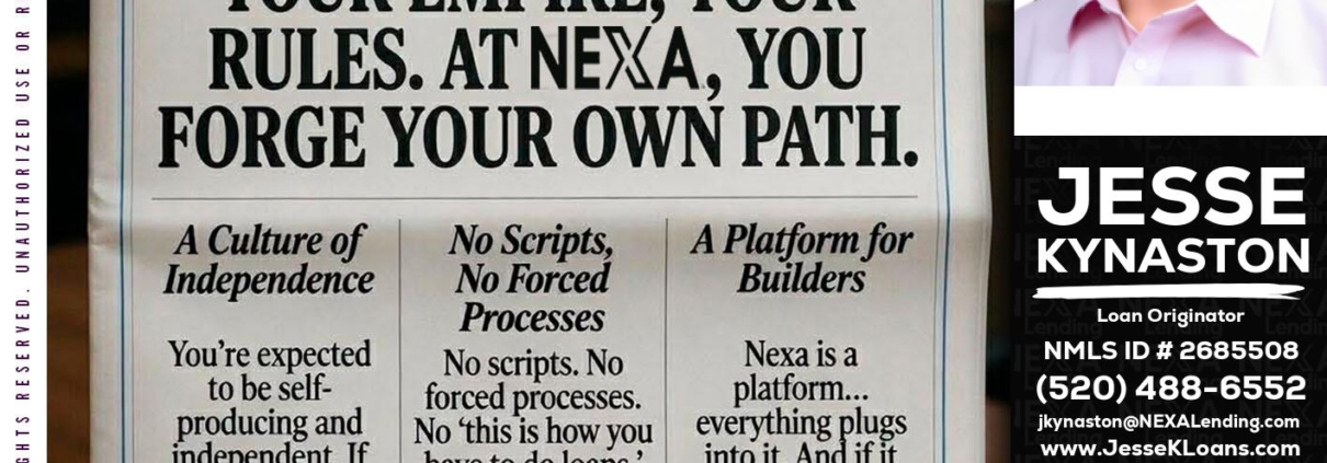 Hi, my name is Jesse Kynaston. I’m a Loan Officer with NEXA Lending LLC., offering personalized mortgage solutions, fast customized quotes, great rates and service with integrity.